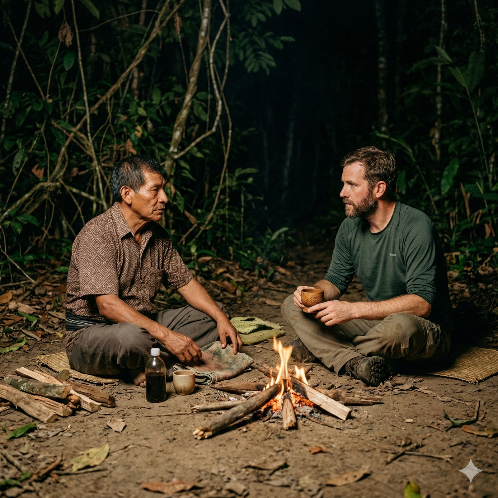 Before returning to England, I chose to sit with ayahuasca again. This time it was one to one, just me and a shaman beside a fire in the jungle. There was no group container, no shared atmosphere, only direct confrontation.