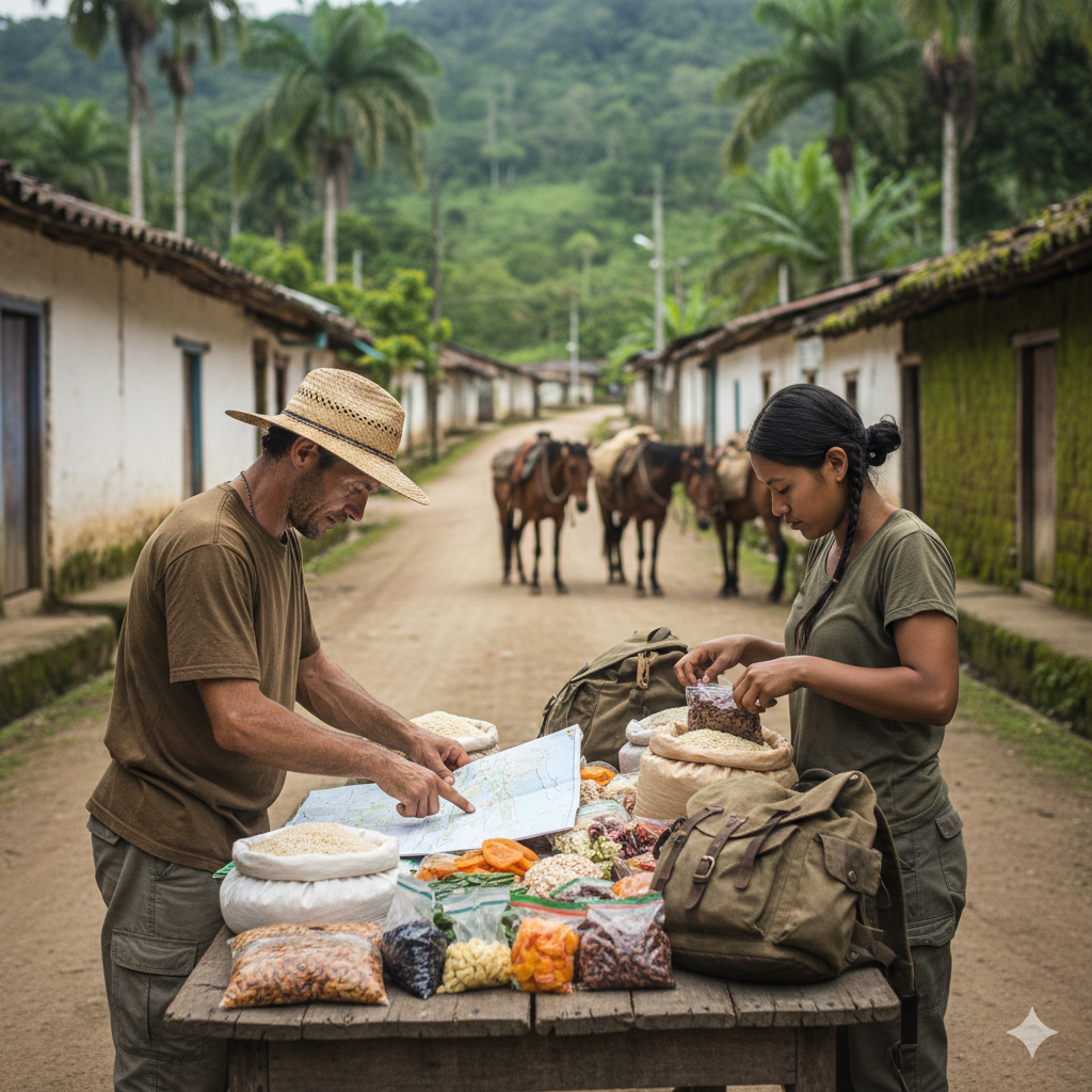 After a few days in the south, we returned to Lima and arranged flights back up to Tarapoto. It was there that we organised what we needed for the expedition. We found another guide, hired packhorses, and bought supplies — rice, pasta, packets of soup and dried food that could be cooked easily over an open fire.