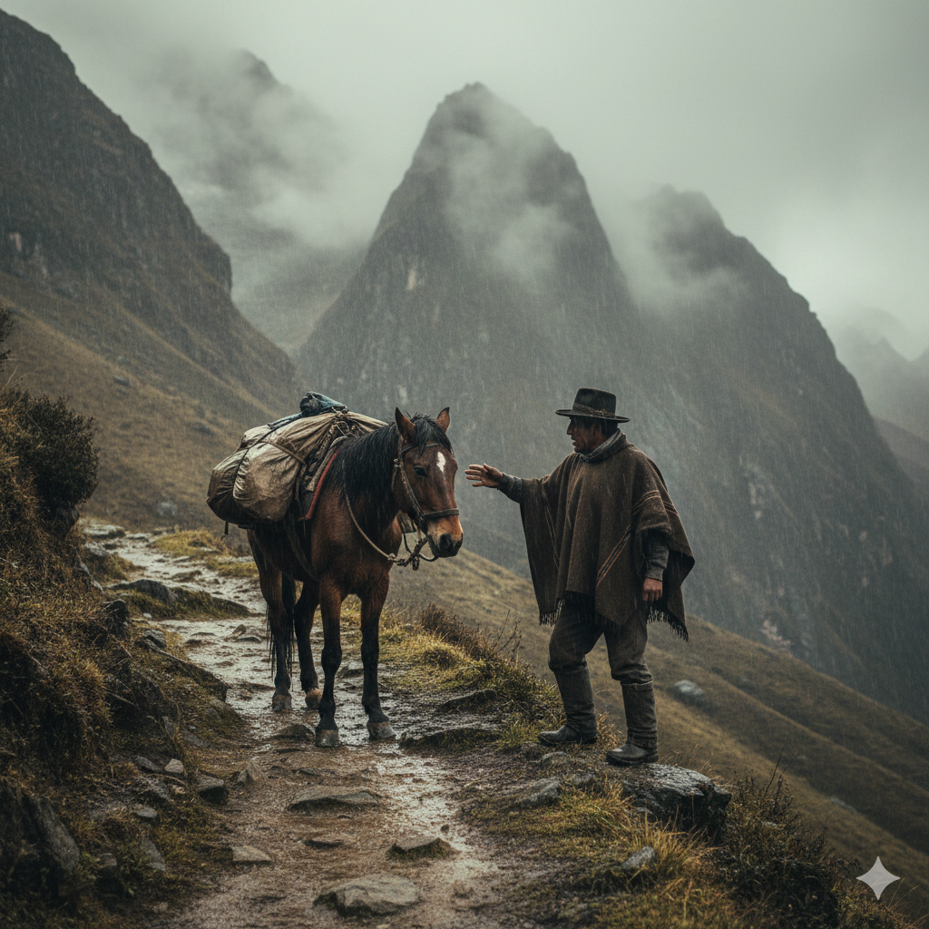 At one point our guide attempted to take one of the pack animals in a different direction. Something rose up inside me — deep and uncertain at first, but suddenly powerful. A voice came from somewhere beyond my usual thinking and I shouted for him to stop and turn back. It wasn’t planned or measured; it was instinct. He turned around instantly.